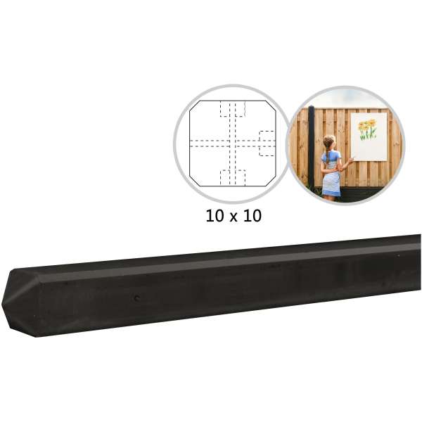 Beton T-paal antraciet gecoat rotsmotief - 10 x 10 x 280 cm