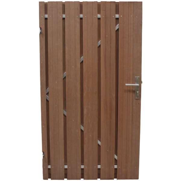 Deze hardhouten geschaafde tuindeur met verzinkt stalen frame is een stevige en duurzame deur die speciaal ontworpen is voor gebruik in tuinen of buitenruimtes. Het stevige frame biedt extra bescherming tegen weersinvloeden, terwijl het geschaafde hardhout zorgt voor een gladde afwerking en warme uitstraling. Het resultaat is een stijlvolle tuindeur die een veilige toegang biedt tot uw tuin, terras of oprit.