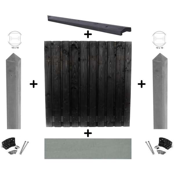 Startpakket zwart gespoten hout - grijs beton schutting