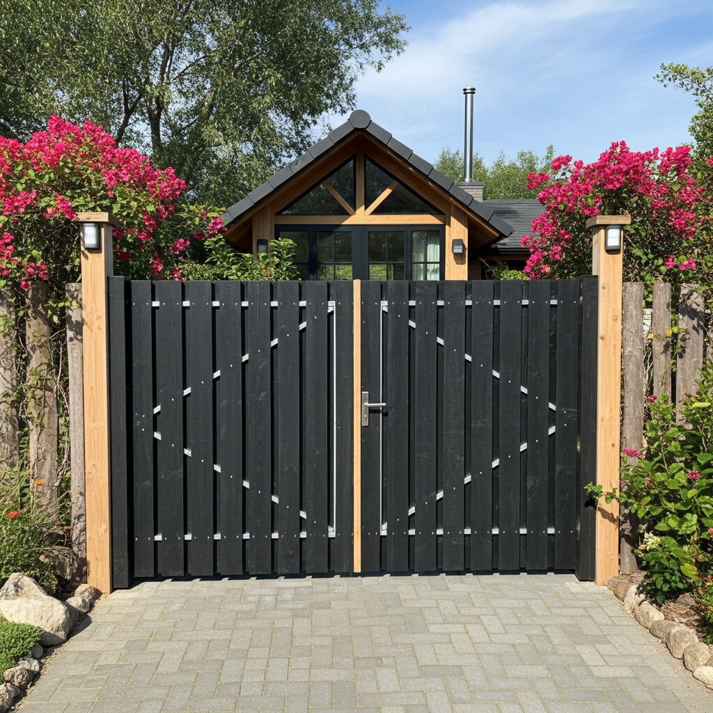 - Tuindeur met zwart gespoten tuinplanken, 16mm